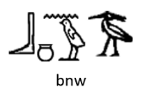 The name of the phoenix has also been considered to be derived from that of the benu, which has been taken as evidence of the Egyptian origin of the Classical myth. Sethe and Spiegelberg, followed by many others, have argued that the Egyptian word benu should be pronounced *boin or *boine, on the basis of the fact that it is written as bjn-w. The name φοῖνιξ is therefore considered to be only a Greek version of the Egyptian term for the benu. Several serious objections to this conclusion can be put forward […].