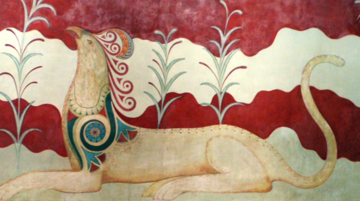 The griffin is tricky, as one of the earliest recognizable images comes from Crete, specifically the royal palace complex at Knossos, causing people to associate it with Greek culture. And indeed, the Bronze Age Greeks drew significantly from the Minoans, including at least their mode of dress, the buon fresco technique, and the Linear B script. Maybe the Mycenaeans also borrowed the bird-creature along with many other things, but we don’t know because of the Late Bronze Age Collapse.