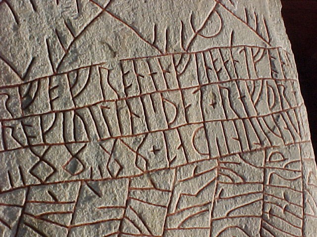 The ALU sequence seems to have been used to identify an inscription as a runic charm. Old Norse uses a mark that looks something like our modern colon (:) to show breaks between words, and since the charm didn’t line up cleanly, I added those to the image to yield: